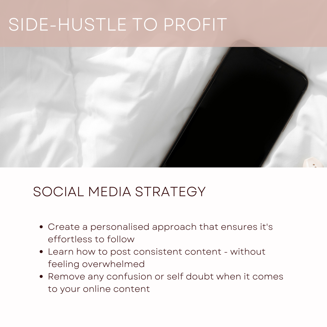 Learn from mistakes, utilise my marketing and social media knowledge & get my tips, tricks & hacks so you can turn your side-hustle into a profit, sooner than you expect!